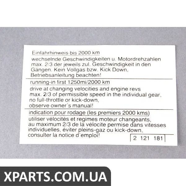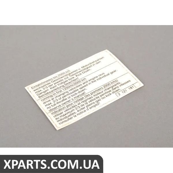 Магазин Xparts ретельно стежить за ціноутворенням і намагається надати клієнту кращу ціну на Наклейка з інструкціями щодо запуску BMW 51142121181.