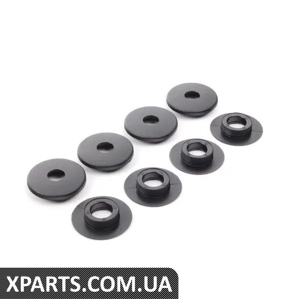 OEM VW/Audi Комплект кріпильних пристроїв для кріплення овальних підлогових килимків для кріплення OEM-комплектів підлогових килимків до підлоги. Щоб зробити всі 4 килимки, вам потрібно замовити 2 комплекти. Постачається з 4 пластиковими гайками кріплення, такими ж, як 3DO898501B41
