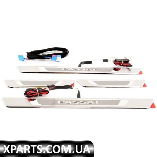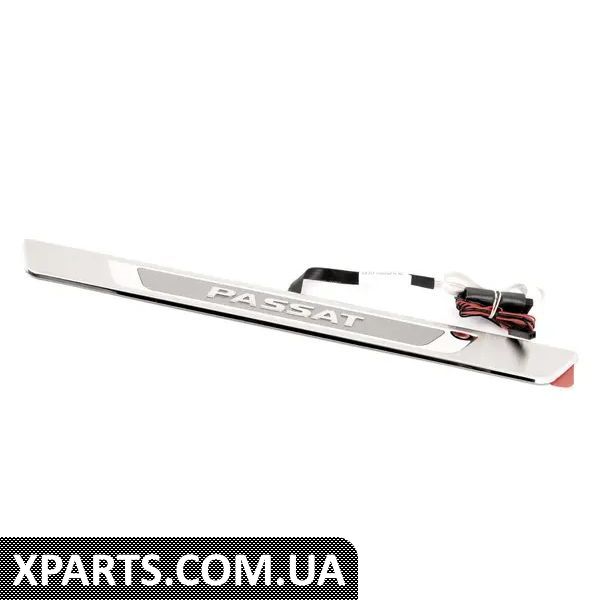 Елегантний захист вашого автомобіля. Вставка з високоякісного полірованого алюмінію прикрашена опуклим написом Passat з підсвічуванням. Ця наклейка не тільки стильно захищає пороги дверей, але й надає індивідуальності зовнішньому вигляду вашого автомобіля. Включає набір з чотирьох. Підсвічуються лише передні частини