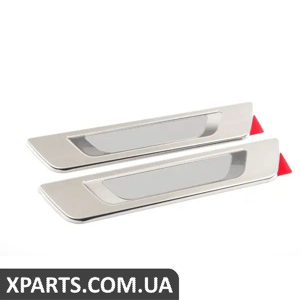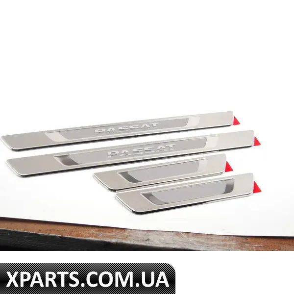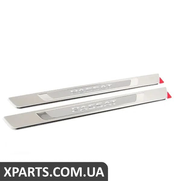Елегантний захист вашого автомобіля. Вставка з високоякісного полірованого алюмінію прикрашена опуклим написом Passat. Ця наклейка не тільки стильно захищає пороги дверей, але й надає індивідуальності зовнішньому вигляду вашого автомобіля. Включає набір з чотирьох.