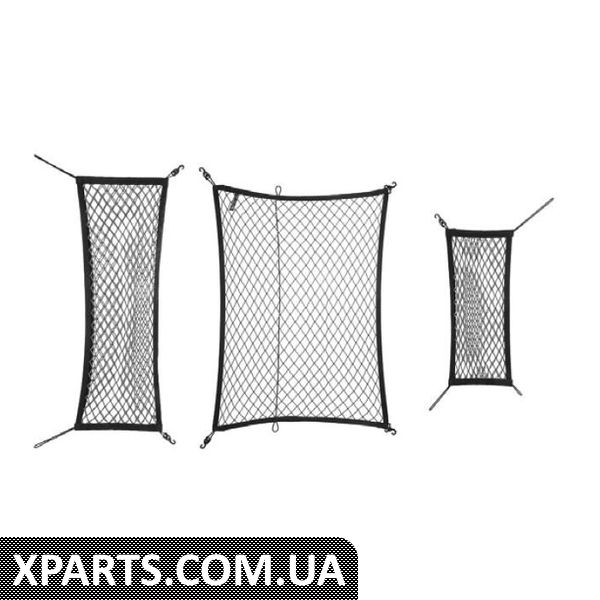 Комплект з трьох частин практичних багажних сіток, дві вертикальні сітки (поперечна та поздовжня) та одна горизонтальна сітка для підлоги, дизайн чорний/сірий, підходить для 5-місного варіанту з запасним колесом.