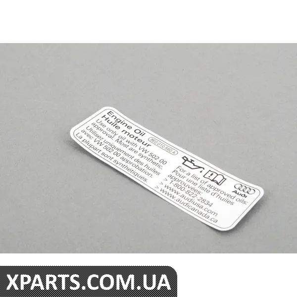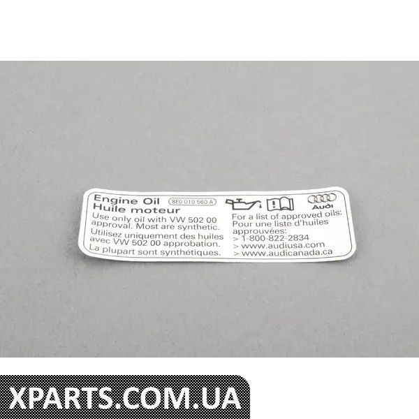 Магазин Xparts ретельно стежить за ціноутворенням і намагається надати клієнту кращу ціну на Наклейка про відповідність олії VAG 8E0010560A.