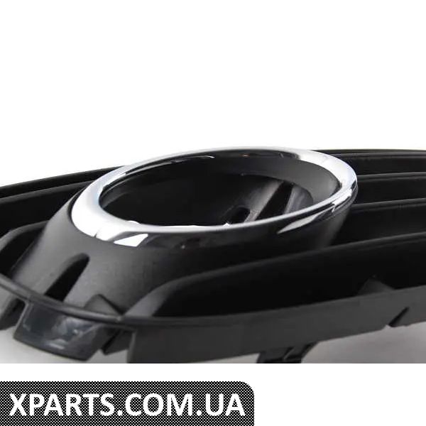 Це нижні решітки повітроводу для вашого Audi. Ця решітка підходить для лівої (водійської) сторони та має хромоване кільце для протитуманних фар.