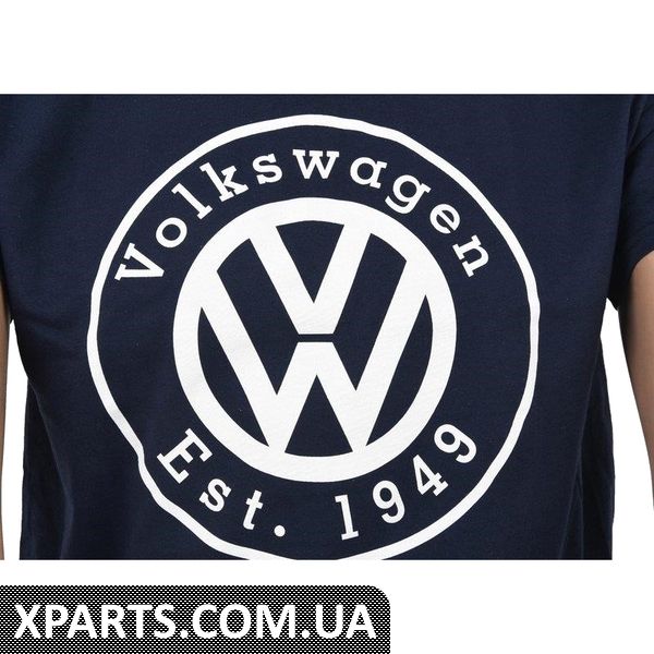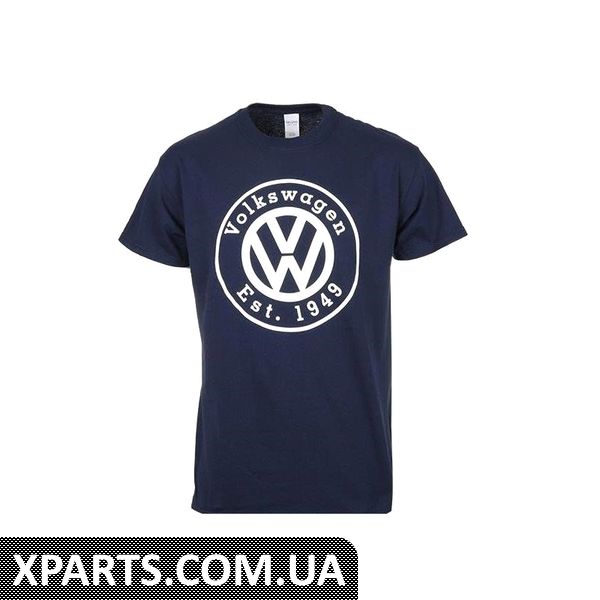 Темно-синя футболка середньої ваги з усадкою зі 100% бавовни. Графічний екран Volkswagen надруковані в білому. Класичний фіт.